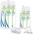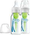 Стъклените стандартни шишета за хранене с вместимост 250 ml от серията "Options+" на "Dr. Brown's" се отличават с подобрена система за цялостно вентилиране "Natural Flow", биберон, втулка и капачка. Шишетата са изработени от висококачествена естествена суровина - боросиликатно стъкло, което е природосъобразно, издръжливо и устойчиво на драскотини. То осигурява високо ниво на хигиена, поддържа храната топла за дълго време и е устойчиво на температурни колебания. Шишетата са в комплект с меки силиконови биберони размер 1, подходящи за новородени бебета. Те осигуряват равномерна скорост на ... |