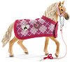 Всички в клуба по езда се възхищават на красивите аксесоари и одеяла за коне, които София прави. Тя влага в изработката им цялата си обич и търпение, затова нейните творения се продават в магазинчето "Hazelwood". Съвсем скоро София е направила и красив комплект за своята любима кобила. Фигурката и аксесоарите са част от серията "Клуб по езда" на немската фирма "Schleich" и ще зарадват своите почитатели с прецизна изработка и дълбока детайлност. Здравината и издръжливостта на материала, от който са изработени, ги прави подходящи не само за украса, но и за активна игра. ... |