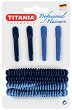 Комплект аксесоари за коса от "Titania", който включва 4 продълговати щипки и 4 ластика за коса със свежи сини цветове. Щипките са с дължина 4.5 cm и са със зъбчета от вътрешната страна, за да осигурят стабилно закрепване. Съчетани с ластиците за коса в същата цветова гама, те са перфектни за оформяне и фиксиране на желаната прическа. ... |
