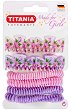 Комплект с аксесоари за коса от немската компания Titania, който включва 8 малки шноли и 2 ластика. Шнолите са във формата на звездички, а ластичетата са с прикрепени украси във формата на цветя. Всички те са в закачливи цветове, за забавни и красиви прически на малките принцеси. ... |