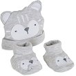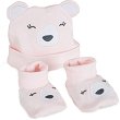 Бебешкият комплект Rey от Cangaroo се състои от шапка и буйки. Той е изработен от мека и приятна на допир материя със състав 100% памук, който е нежен към чувствителната бебешка кожа. Шапката има интересен дизайн с форма на меченце и е с дължина 16 cm и обиколка 32 cm. А буйките са меки и удобни, и осигуряват максимален комфорт на бебето при движение. Те са тип терлички и са с дължина на стъпалото 11 cm. Комплектът е подходящ за бебета от 0+ до 6 месеца. ... |