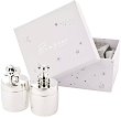 Кутийките са част от колекцията Bambino, в която ще откриете още бебешки и детски продукти по темата. ... Кутийките Star на Widdop Bingham са красиво и емоционално допълнение към спомените от първите мигове на вашето дете. Комплектът съдържа 2 малки кутийки във формата на звезда, предназначени за съхранение на първото зъбче и първата къдрица на бебето. Вътрешността на всяка от тях е обозначена с илюстрация - зъбче и гребен, за да се знае къде да се поставят тези скъпи за родителите спомени. Кутийките са изработени от висококачествена керамика в неутрално бяло, а капачетата им са украсени със сребристи детайли, които ... |