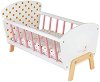 Комплектът на Janod ще научи вашето дете как да се грижи за куклите си. Малкият човек ще приготви куклата за сън като я сложи в леглото. Кошарата има спално бельо с декорация от златисти точки, възглавница, матрак и розови решетки. Леглото е подходящо за кукли с височина до 42 cm. Времето за сглобяването му е 15 минути. Развийте въображението и социално-емоционалните умения на малчугана, докато се забавлява. Леглото е с размери 49.4 / 29.9 / 29.9 cm. Важно: Куклата показана на допълнителните снимки може да закупите отделно. ... |