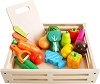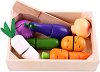 Комплектът за игра от "Moni" ще стимулира въображението на малчуганите. Той е подходящ за деца над 18-месечна възраст и с него ще научат зеленчуците лук, домат, лимон, патладжан и морков. Освен това ще могат да играят на "готвач" или да включат комплекта в своя магазин. Всеки зеленчук е от две части, съединени с велкро (лепящ цип), така детето лесно ще може да ги разреже с помощта на дървеното ножче и да ги сервира на специалната дъска. Дъската е с размери 26 / 5 / 16.5 cm. ... |
