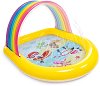 През горещите летни дни, всеки има нужда от прохладата на водата. Един хубав начин да се разхладят вашите мъници, е играта с басейна от Intex. Той е с дизайн на дъга, който ще се хареса на малчуганите. Освен това басейнът разполага със сенник, който ще предпазва мъниците от горещото слънце, докато играят с любимите си играчки, а също и пръскалка. Тя се активира, когато басейнът бъде вързан към градинския маркуч. Басейнът е с вместимост 84 l, а размерите му са 147 / 130 / 86 cm. Препоръчва се поставянето на басейна върху специална подложка за басейн, тъй като асфалтът или друга твърда повърхност могат да доведат до ... |