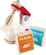 Комплектът е част от серията PolarB, където ще откриете още играчки и аксесоари по темата. ... Комплектът от Viga Toys ще се хареса на всеки малчуган, който мечтае да стане велик готвач. Той се състои от миксер с купа, кутия с мляко, 2 торбички със захар и брашно и яйце. Елементите са изработени от дърво, оцветено в безвредни бои на водна основа. Миксерът разполага с вдигаща се бъркалка. Докато играе с комплектът, вашия малчуган ще се забавлява, докато развива своето въображение, фина моторика, логика и координация. ...