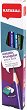 Комплектът от серията "Black'Peps" на "Maped" включва 12 броя графитни моливи с гума за изтриване. Те са с ергономична триъгълна форма на корпуса, която позволява удобен захват и минимализира риска от неволно търкаляне по чина или бюрото. Графитните моливи са изработени от висококачествена дървесина в черен дизайн с оранжеви ленти и могат да се подострят лесно със стандартна острилка. Моливите са подходящи за художествено рисуване, гладко писане, чертане и скициране. Притежават плътен графит, устойчив на счупване с твърдост 2B и диаметър ∅ 2.2 mm. Те са идеално допълнение към всеки дом, офис ...