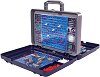 Играта "Морска битка" от "Noris" идва при теб в удобен за съхранение и пренасяне куфар. Комплектът включва двустранно игрално поле, фигурки на кораби, бели и червени топлийки. Играта е предназначена за двама играчи над 5-годишна възраст. Правила на играта: След сглобяването на игралното поле всеки играч поставя своите кораби върху произволни полета от игралната повърхност. Корабите не трябва да се докосват директно. Този, който е на ход, посочва на противника една координата - например "C3". Противникът проверява дали е улучен някой от неговите кораби и казва съответно "не улучи" ... |