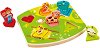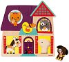Детският музикален пъзел от Janod ще помогне на децата да се научат да разпознават животните. Пъзелът има звуков ефект, така когато някое от животните бъде поставено на правилното му място, ще се чуе звукът, който то издава. Звуците включват тези на куче, птица, хамстер, котка и конче. На елементите има поставени дървени пинчета, които улесняват малчугана да ги хваща и поставя по-лесно в определените отвори. Дървеният пъзел разполага със система за включване и изключване на звука на гърба. Комплектът е изработен от дърво, а използваните бои са напълно безвредни и на водна основа. Играчката работи с 2 батерии AAA, ... |