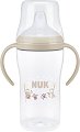 Неразливащото се преходно шише е със забавна картинка от любимото филмче на децата Цар Лъв и е част от серията First Choice на NUK. Тя е с вместимост 300 ml и е подходяща за бебета над 12 месеца. Шишето ще помогне на вашето дете да се научи да пие самостоятелно, правейки плавен прехода от бебешко шише към чаша. Ергономично оформено е, за да пасне на детските ръце, а благодарение на прозрачния си материал, винаги може да видите колко течност приема бебето и дали все още е достатъчно пълно. Шишето е снабдено с твърд накрайник, който е изработен от еластичен синтетичен полипропилен. Този накрайник е издръжлив и ... |