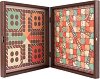 За почитателите на класическите игри от "Manopoulos" предлагат луксозен комплект, който ще бъде подходящ подарък за тях независимо от повода. Той се състои от кутия с основа за игра на "Шах", "Табла", "Не се сърди човече" и "Змии и стълби", дървени фигури за шах и дама, и пластмасови зарчета. Кутията е изработена от висококачествен дървен материал и в отворено състояние е с размери 34 x 68 cm. От вътрешната и външна страна кутията има игрални полета за 4 различни игри. ... |