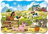 Малкият човек ще се забавлява с пъзела от Galt. Той се състои от 20 части, от които може да се сглоби ферма. Пъзелът има 10 капачета, под които са скрити животни. Запознайте малчугана с прасе, крава, кон, овца, котка, патица, зайче и други. Дайте шанс на вашето дете да развие своето въображение, фина моторика, логика, концентрация, координация око-ръка и сръчност. Размерите на пъзела са 40 x 55 cm. ...