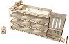 Механичният модел от Wooden City е изработен от дърво и има средно ниво на сложност за сглобяване. Комплектът включва 147 части, от които 19 резервни части, 5 метални топчета, които се движат по пистата, задвижвани механично чрез лоста и зъбчатите колела, восъчна свещ за смазване, шкурка и подробни инструкции за сглобяване. Всяка част е прецизно изрязана с лазер, за да се осигури точно и безпроблемно напасване и лесно сглобяване. Няма нужда от прекомерна сила - всички части могат да бъдат сглобени гладко с логическо мислене и внимателно боравене. ...