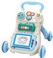 Проходилката за бутане тип уокър ще превърне първите крачки на бебето в истинско забавление, подпомагайки развитието на сетивата и фината моторика. Тя разполага със стабилна конструкция и неплъзгащи се задни колела, които осигуряват максимална безопасност и сигурност на детето. Височината на дръжката може да се регулира спрямо ръста на бебето, както и скоростите на колелата, което позволява уверено и спокойно бутане на проходилката. За по-голямо удобство, тежестта на уокъра може да се регулира като напълните резервоара отзад с вода или пясък. Предвиден е и панел с музикални и светлинни ефекти, както и въртящи се играчки, ... |