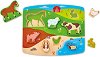 Детският дървен пъзел "Ферма" от "HaPe International" се състои от 6 фигурки върху поставки с различен цвят и форма. Всяка от тях пасва на точно определено място в подложката, която е с размери 22.6 x 20.8 cm. След поставянето на всяка от формите, детето ще чува различни звуци. За целта са ви необходими 2 батерии AAA 1.5V, които може да закупите отделно. Благодарение на играта с пъзела, децата ще се научат да разпознават цветовете, формите и някои от видовете домашни животни. ... |
