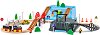 Вашите малчугани ще се впуснат в скоростни приключения с влакчето от Woodyland. Комплектът е изработен от дърво и включва релси, влакче с вагон, такси, преграда с кран, прегради за жп прелез, пътни знаци, 3 конуса, 2 релсови връзки, 2 мини фигурки и елементи за декорация. Релсите са в различни размери - 3 дълги, 2 средни и 2 къси. Релсовите връзки са изработени от пластмаса. Влакчето може да се отделя и закача за вагона чрез магнит. Таксито също разполага с магнит за закачане. Мини фигурките са машинист и шофьор на такси. Те имат подвижни торсове и ръце. Кутията за съхранение е изработена от пластмаса и по нея са ... |