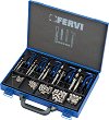 Комплектът на Fervi е предназначен за възстановяване на резби M12 със стъпка на резбата 1.75 mm. Инструментите се доставят в метална кутия за съхранение. Брой и вид на накрайниците: свредло метчик 10 пружини ∅ M12 върток шестограмен ключ избивач ... |