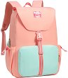Раницата от DKT е практична и удобна за ежедневна употреба и училище. Тя е с атрактивен дизайн, който ще се хареса на момичетата. Гърбът ѝ е подсилен, а презрамките ѝ са подплатени и могат да бъдат регулирани според височината и комфорта на детето. Раницата разполага с едно основно отделение и малък преден джоб, които се затварят с ципове, както и 2 странични джоба с пристягащи се ластици. В допълнение, раницата разполага с къса дръжка за носене в ръка и преграда за лаптоп, а освен с двупосочен цип, основното отделение се затваря и с капак със закопчалка. Характеристики на раницата: подплатен гръб меки ... |