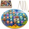 Състезателната игра "Риболов" от "Lelin Toys" е изработена от дърво и се състои от цветни рибки и морски звезди с цифри от едната си страна, и две въдички с магнити. Тя ще помогне на малчуганите да развият фината си моторика, да научат цветовете, числата и да упражняват смятане. Играта е подходяща за деца над 3 години и се играе от двама играчи. Целта е да се ловят рибките с помощта на въдиците, като победител е този, който има по-голям улов, или този чиито сбор от числата на рибките е по-голям. Комплектът е изработен от дърво с магнити, рибките са с приблизителни размери 4 / 8.5 / 0.5 cm, а морските ... |