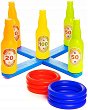 Играта с рингове ще донесе много забавни мигове на вас и вашите деца. Комплектът се състои от елементи за сглобяване на кръстосана основа с 5 шишета и 6 ринга. Целта на играта е ринговете да се хвърлят и да се уцели някое от шишетата. Всяко от тях носи различен брой точки. Съберете най-голям брой точки и победете останалите играчи. Размерите на сглобената основа са 42 / 23.5 / 42 cm. Всеки ринг е с диаметър 17 cm. ... |