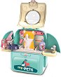 Салонът за кучета ще бъде интересна играчка за вашето дете. Комплектът идва в куфар, който има форма на ракета. Тя може да се отключва и заключва чрез въртящ се механизъм. След отваряне се трансформира в салон за красота с фигурка на кученце. Към комплекта са включени и кокалчета, топка, кучешки бисквитки, сешоар, гребенче, и други аксесоари. С всички компоненти детето ще може се погрижи за своя домашен любимец. ... |