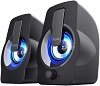 Тонколонките Gemi RGB 2.0 от TRUST съчетават стилен и компактен дизайн, който ще се впише идеално във всяко работно пространство. Осигуряват отлично качество и яснота на звука и позволяват да свържете слушалки с 3.5 mm жак към тях. Колонките разполагат с RGB LED подсветка с автоматичен цветен цикъл, която се активира след като бъдат включени. А благодарение на бутона, разположен отпред, бързо и лесно може да регулирате силата на звука само с едно завъртане, както и да включвате и изключвате високоговорителите по всяко време. Тонколоните са с максимална мощност 12 W и се свързват с помощта на USB кабел към компютър или ... |