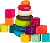 Комплектът е част от серията B Toys, където ще откриете още интересни играчки за вашето дете. ... Комплектът от Battat ще бъде чудесен подарък, с който детето ще се запознае с различните цветове и ще развие своите сетива. Той съдържа 5 цветни елемента, всеки от които е с различна текстура, цвят и размери, както и накрайник във формата на топче. Цветните елементи се поставят един върху друг, за да образуват кула или да се използват поотделно за игра. Освен това детето ще открие и кубчета. От всяка страна то ще намери числата от 1 до 10, както и други илюстрации. Детето ще може да подреди кубчетата като кула или да играе ... |