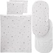 Спалният комплект е част от серията Honey Bunny, в която може да откриете още бебешки и детски продукти по темата. ... Бебешкият спален комплект от Lorelli се състои от пелена за завиване, възглавница, калъфка за възглавница, чаршаф с ластик и протектор с 2 ластика. Той е подходящ за всички стандартни кошове за новородено и ще даде на вашето бебе необходимия комфорт, от който се нуждае то по време на разходка с детската количка през пролетно-есенния сезон. Спалното бельо е изработено от мека и приятна на допир материя със състав 100% памучен ранфорс, а пълнежът на пелената и възглавницата е от 100% полиестер. От ... |
