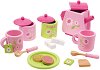 Като млада и изискана госпожица, и ти като мама искаш да имаш красив чаен сервиз, за да събираш приятелките си на чаено парти. Сладките приказки в приятна компания с чаша ароматен чай и бисквитки - този следобеден ритуал е наистина удоволствие и не случайно се е превърнал в традиция. А сега можеш да организираш собствено чаено парти с комплекта от GINGER HOME! Той е подходящ за деца над 3-годишна възраст и е изработен от дърво, боядисано с безвредни бои на водна основа. Състои се от поднос, чайник, 2 чашки за чай, 2 чаени чинийки, 2 сладки, чиния за сладки, 2 лъжички, захарница, каничка за мляко и 2 фигурки на торбички ... |