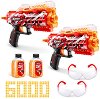 Комплектът е част от серията X-Shot, където ще откриете още детски оръжия и комплекти по темата. ... Бластерите Stinger от Zuru могат да обстрелват всички набелязани мишени. Оръжията са полуавтоматични и пристигат в комплект с 2 чифта предпазни очила и 6000 гел топчета, които се поставят в пълнител с място за 200 топчета. При натискане на спусъка, пистолетите ще изстрелят по 1 топче. Мунициите в комплекта се наричат водни или гел топчета. Преди детето да започне стрелба с тях е необходимо да ги изсипете в дълбок съд и да налеете вода. Оставете ги така 3 часа, след което топчетата ще са готови за употреба. Важно! ... |