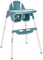 Amaro на Lorelli е леко и компактно столче за хранене с лесна за почистване пластмасова седалка. То е подходящо за деца от 6 месеца до приблизително 3-годишна възраст. Предвидената регулируема двойна табла, подходяща за хранене и игра, разполага с поставка за чаша или бурканче, а когато не е необходима може да се закачи на краката на столчето в задната част. Горната част на таблата лесно може да бъде отделена за улеснение на почистването. А безопасността на детето е подсигурена от 3-точков предпазен колан и T-образен предпазител под таблата. Столчето е произведено в съответствие с Европейския стандарт за безопасност ... |
