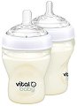 Бебешките шишета на Vital Baby са с вместимост от 240 ml и са подходящи за бебета от 0+ месеца. Те са изработени от полипропилен и имат широко гърло, което улеснява тяхното пълнене и почистване. Бибероните, включени в комплекта, са произведени от 100% мек силикон със зона Flexzone, която позволява те да се разтягат и огъват точно като майчиното зърно, за да могат да осигурят максимално естествено усещане на вашето бебе. Бибероните са с бавен поток на течността Slow Flow и са подходящи за бебета от 0+ месеца. Те са специално проектирани да наподобяват естествения процес на кърмене, а това спомага за по-лесен преход от ... |