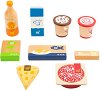 Комплектът от Small foot се състои от 9 части, които включват бутилка портокалов сок, два пакета сладолед, пакет грах, рибени пръчици, масло, кашкавал, слайс салам и кутия мляко. Всички те са изработени от масивна дървесина, боядисана с безвредни бои на водна основа. Комплектът е подходящ за деца над 3-годишна възраст. ... |