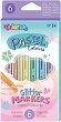 Флумастерите от серията "Pastel" на Colorino Kids" се предлагат в комплект от 6 пастелни цвята с брокатен ефект - жълт, оранжев, розов, лилав, син и зелен. Те разполагат с пластмасова капачка, на която има специално проектирани отвори, които позволяват преминаването на въздух. Благодарение на тази система мастилото не изсъхва. Флумастерите са лесни за нанасяне, разполагат със конусовиден връх, даващ възможност за детайлно рисуване и покриване на големи повърхности. Блестящите флумастери са подходящи за рисуване върху хартия, картон, могат да се използват за рисуване оцветяване, декориране и надписване на ... |