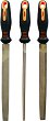 Пилите на Premium са подходящи за дърво и други меки материали. Изработени са от високовъглеродна закалена стомана Т12 с твърдост 47 HRC, което им осигурява устойчивост на износване и дълготрайност. Имат ергономични дръжки с отвори за закачане за комфорт при употреба и лесно съхранение. Комплектът включва плоска, полуобла и обла пила с дължина 20 cm. ... |