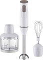 Комплектът на Muhler ще бъде чудесен помощник в кухнята за всяка майка. Той съдържа ръчен пасатор, мини чопър и приставка за разбъркване. Ръчният пасатор разполага с остриета от неръждаема стомана, с които бързо и лесно ще пасирате различни плодове и зеленчуци за приготвянето на смутита, пюрета, крем супи и още много други вкусни неща. Той има мощен мотор и предлага 2 скорости на работа - нормална и турбо, а дизайнът му гарантира лесна и удобна употреба. Когато ви е нужен чопърът лесно може да поставите накрайника с мотор върху неговата купа. Той е с вместимост 500 ml, има остриета от неръждаема стомана и с него лесно и ... |