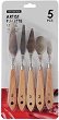Комплектът от серията Artix на MP включва 5 броя шпакли за рисуване с различно оформени краища. Шпатулите са изработени от стомана с гъвкави остриета и дръжки от лакирано дърво. Острието е здраво фиксирано към дръжката с метален пръстен. Палетните ножове са идеални за работа със структурни пасти и гелове и в зависимост от формата си са подходящи при използването на различни техники в рисуването с акрилни и маслени бои. Използват се както за смесване на цветове, така и за създаване на различни текстури, дълбочини или триизмерни ефекти с помощта на медиуми, както и за издърпване и разпространение на цвета ...