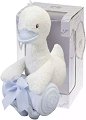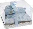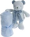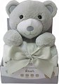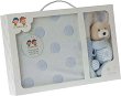 Комплектът на "BabyMatex" се състои от бебешко одеяло и плюшена играчка. Одеялцето е изработено от много мека и приятна на допир 100% полиестерна материя и е с размери 75 x 100 cm. С него може да повивате новороденото, както и да го ползвате за одеяло в креватчето или в количката при ежедневните разходки. А с плюшеното мече детето може да си играе или да го гушка в леглото. Приблизителната височина на играчката е 27 cm. Пране: Отделните части на комплекта могат да се перат както на ръка, така и в перална машина при 30°C. Комплектът е декориран със стилна панделка, която му придава вид подходящ за подарък. ... |