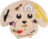 Малчуганите ще се забавляват с дъската с формата на мече. Тя разполага с въртящо се зъбно колело с улеи и пясък, велкро, райбер, катарама, часовник, сметало, ключ с ключалка, отварящи се вратички, заключалки и зигзагообразен улей, по който се движи мече. Децата могат да подобрят своята фина моторика, сръчност, координация око-ръка, логическо мислене, концентрация и въображение, докато играят. Те могат да опознаят заобикалящия ги свят чрез движението на различните предмети. Приблизителните размери на мечето са 40 / 30 / 3 cm. ... |