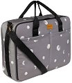 Чантата е част от серията Nuit White, където може да откриете още бебешки продукти по темата. ... Чантата за път на Baby Clic разполага с достатъчно място за да поберете всичко необходимо за разходката с вашето мъниче. Тя е изработена от 100% полиестерна материя, като външната ѝ част е с водоустойчива обработка. Чантата се закопчава с цип и има 2 външни джоба и 1 вътрешен джоб за организиране на пелени, шишета за хранене и други необходими принадлежности за вашето бебе. Тя разполага и с 2 къси дръжки за носене в ръка и дълга регулируема презрамка за рамо, която дава възможност да закачите чантата на детската ... |