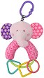 Веселото и цветно слонче на "Lorelli" насърчава малките бебета да се забавляват и развива тяхното въображение. То е с ярки цветове, за да привлече и развие зрението на детето. Мека и забавна, тази играчка развива визуалните, моторни и слухови координации на бебето. В долната ѝ част има ринг с 3 закачени геометрични фигурки, играещи ролята на дрънкалка, която да приучава мъничето на причинно-следствените връзки. Мечето може да бъде закачено на креватче или количка, посредством пластмасова халка. ... |