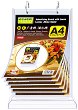 Поставката на "Kejea" е предназначена за информационни съобщения, рекламни брошури, менюта, дипляни и други. Тя е изработена от пластмаса, като разполага със 6 броя прозрачни PVC джоба за листове във формат A4 или по-малки. Джобовете са захванати посредством 2 ринга от нераждаема стомана. Джобовете са разположени хоризонтално, а листовете в тях могат да се подменят изключително лесно, чрез вмъкване от дясната страна. Поставката може да бъде практично решение за ресторанти, заведениея, офиси и други. Характеристики: хоризонтално разположение за листове с формат А4 (29.7 x 21 cm) 6 броя прозрачни PVC джоба ... |