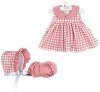 Облечи своята кукла бебе с дрешки от Asi. Комплектът се състои от розова карирана рокля, розови гащи и шапка с връзки в тон с роклята. Дрешката е подходяща за кукли с височина 43 cm. ... |