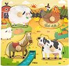 С помощта на детския дървен пъзел от "Woodyland" малките любопитковци ще могат да се научат да разпознават кучето, котката, овцата и кравата, да разберат кои са малките им и да подредят всички животни на специалните за тях места. За да е по-удобно подреждането на пъзела, елементите имат и дървени дръжки. Играта с дървения пъзел развива пространствения усет, фината моторика и логическото мислене при децата. Комплектът се състои от основа с изрязани места за животните и 8 животни за подреждане. Приблизителните размери на дъската са 30 / 22.5 / 0.8 cm. ... |
