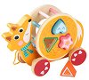 Дървената лисица снабдена с връв за дърпане е забавна играчка, която ще радва малчуганите. Тя има пъстроцветни колелца и сортер с 3 формички, които детето трябва да постави на правилното място. Играта развива въображението, логиката и насърчава движението на децата. Размерите на играчката са 22.5 / 15.5 / 9 cm. ... |