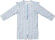 Детският бански костюм на Little Dutch е изработен от мека и разтеглива материя със състав 85% рециклиран полиестер и 15% еластан. Благодарение на добавения еластан, материята осигурява комфорт и свобода на движение по време на игра на плажа и във водата. Слънцезащитният фактор UPF 50+ осигурява максимална UV защита, блокирайки 98% от вредните лъчи. Банският костюм се отличава с дълги ръкави и къси крачоли, а за по-удобно обличане и събличане е предвиден цип с предпазител на лицевата част. Къдриците на раменете и раираният десен на цветя му придават кокетна визия. Препоръки за пране: Препоръчително е изплакване със ... |