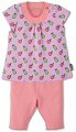 Бебешкият комплект от 2 части на "Sterntaler" се състои от туника и клин, изработени от мека и приятна на допир материя със състав 95% памук и 5% еластан. Туниката се отличава с удобен разкроен дизайн, красиво декориран десен с "плодове" и семпли къси ръкави. За по-удобно обличане и събличане са предвиден тик-так копчета над лявото рамо. А клинчето е с дължина под коляното, има семпъл едноцветен десен, къдрици в долния край на крачолите и удобен ластик на талията. Препоръки за пране: Може да се пере обърнат наопаки в перална машина, на стандартна програма, при 30°С. Да не се използват препарати за ... |