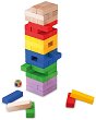 Построй кула с цветни дървени елементи от комплекта на "Andreu Toys"! След като е построена, хвърлете зарчето и извадете внимателно плочка от долната част на кулата със същия цвят, който показва зара. Сложете извадената плочка на върха на кулата. Бъдете внимателни - първият, който събори кулата, ще изгуби играта! ... |