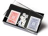 Комплектът съдържа: 2 тестета пластични карти по 52 броя 10 зара от пластмаса Италианската компания "Renzo Ramagnoli" изработва луксозни хазартни игри: ролетки, игрални карти, домино, шахове, табли, зарове, покер и блекджек. Фирмата предлага и професионални игрални маси изработени от махагон. Освен екзотичната костенурска черупка и висококачествената пластмаса, от която са изработени игралните зарове и чипове, се използват и естествени кожи (ламска и телешки бокс) за кутиите, в които са поднесени игрите. ... |