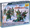 Комплект от 5 мащабно умалени фигури от пластмаса на германски войници в зимни униформи, част от серията "Великата отечествена война" на "Zvezda". Брой части: 26. Средна височина на фигурата: 24 mm. Мащаб на комплекта: 1:72. За сглобяването на комплекта не е необходимо лепило. Фигурите са направени от едноцветна пластмаса. Може да се боядисват с боички. ... |